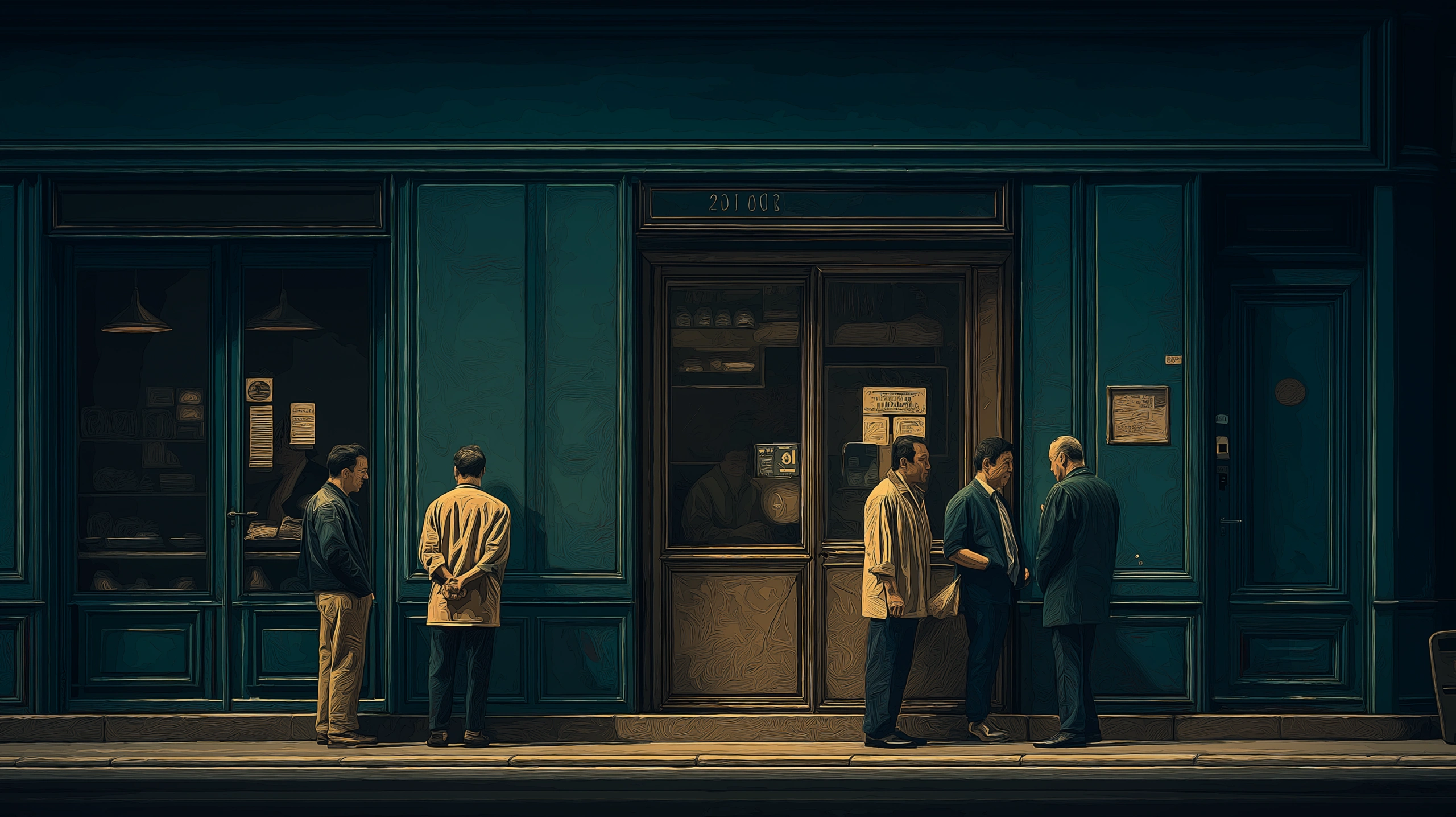 "Tu cherches un local, c'est ça ?" demande Thomas. Hiroshi acquiesce. "Ça fait trois semaines que je visite. Rien ne correspond. Tout est trop cher, trop grand, trop mal situé. Ou alors les propriétaires ne me prennent pas au sérieux. Je commence à croire que c'est impossible."