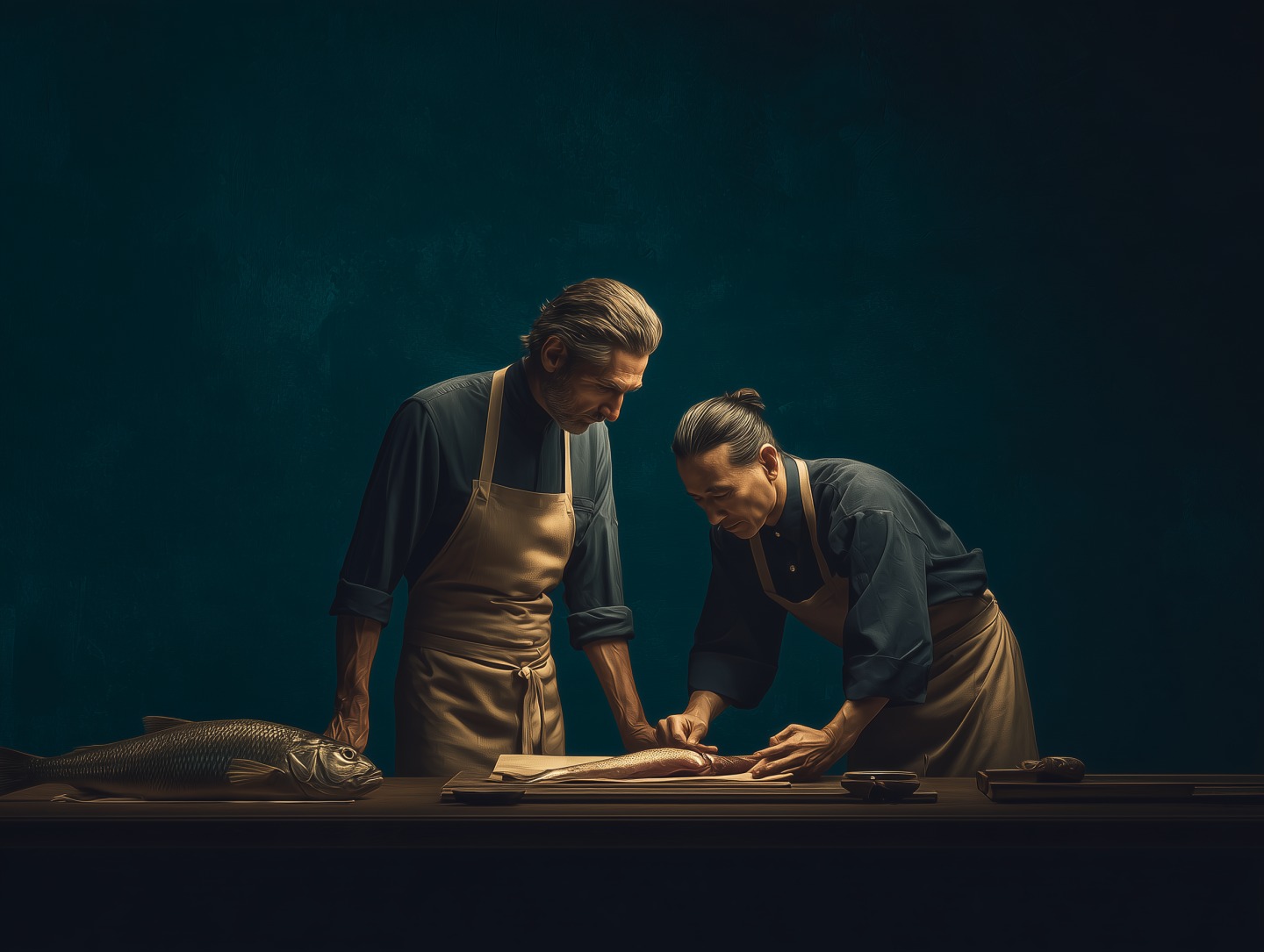 La technique ikejime — cette mise à mort immédiate qui préserve la chair — est pratiquée par nos pêcheurs partenaires. Le poisson ne souffre pas. La qualité est absolue. Hiroshi refuse de travailler autrement.